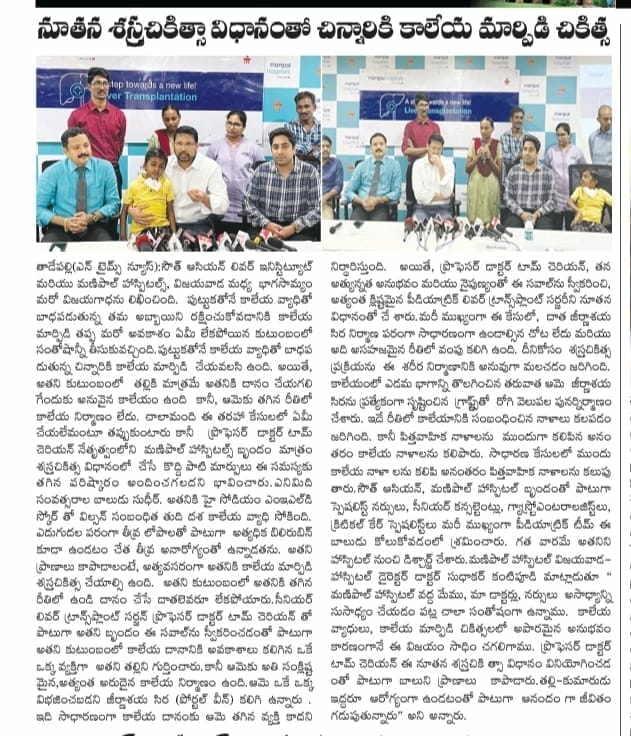 Andhra Pradesh: Rare liver transplantation surgery performed at Manipal Hospital